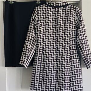 Navy Blue and White Houndstooth Suit w/solid navy skirt.