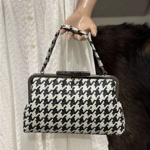Houndstooth Woven Cowhide Push Lock Clutch/Shoulder Bag/Crossbody/Evening Bag