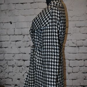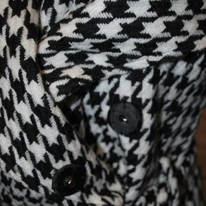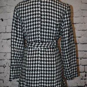EUC Houndstooth printed coat with button closure and belt. Large collar accentuates the wrap style of the coat. Size: Medium 100% acrylic.