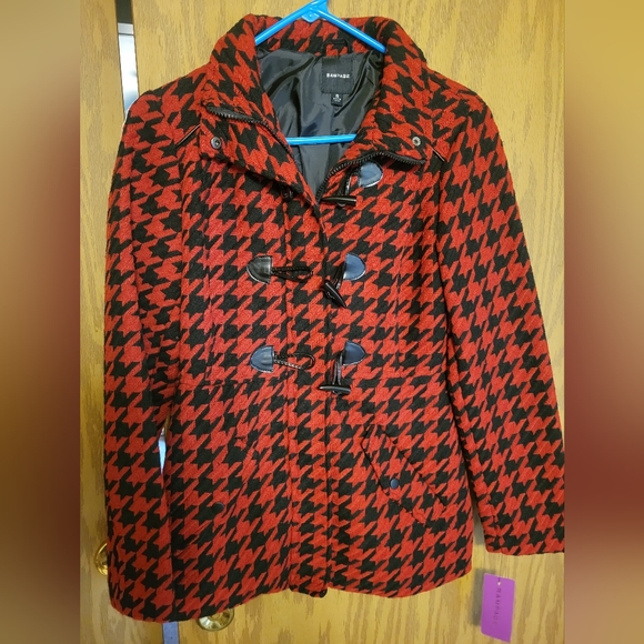 Adorable red and black houndstooth jacket. Size small.