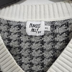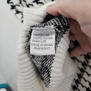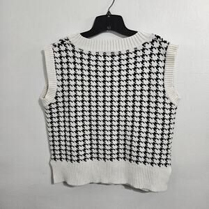 Houndstooth print vintage style sleeveless V neck sweater. Size Medium/Large. Relaxed fit. Soft knit material. Small splits at waist. 55% viscose 25% polyester 20% elastane