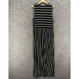 Hount Dress Women 2XL Black Striped Maxi Long Sleeve Cotton Round Neck Casual