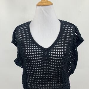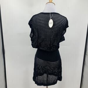 HOUNT DRESS WOMENS S SMALL BLACK OPEN STITCH CROCHET KNIT COVER UP SEE THROUGH