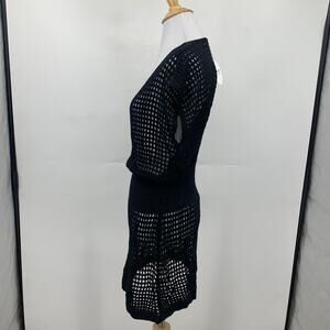 Hount Dress Womens S Small Black Open Stitch Crochet Knit Cover Up See Through