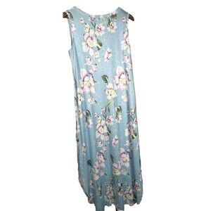 Hount Maxi Dress Blue Floral Tank Large Pockets Side Slits Stretch Sundress