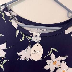 This Hount maxi dress is perfect for a sunny day out! It's made from a lightweight blend of 95% polyester and 5% spandex, ensuring a comfortable and flattering fit. The navy blue floral print is beautiful and eye-catching, and the sleeveless design will keep you cool.