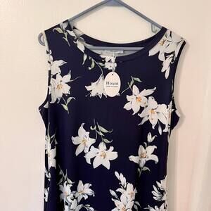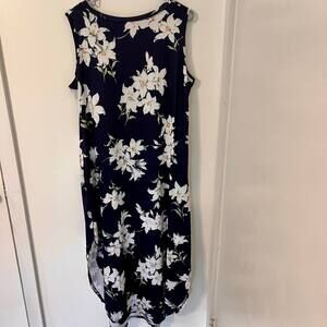 Hount Navy Blue Floral Sleeveless Maxi Dress with Pockets Slits Size XL