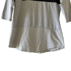 Hount Womens 3/4 Sleeve Back Lace Color Block Tops Round Neck Striped T-Shirts Blouses SZ M #1180
