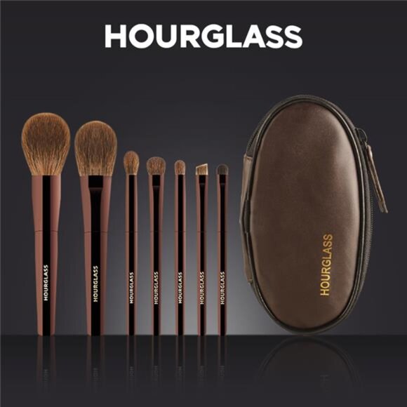 Hourglass Makeup Brush Set Mini Portable 7 Pcs, High Quality Soft Animal Hair