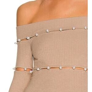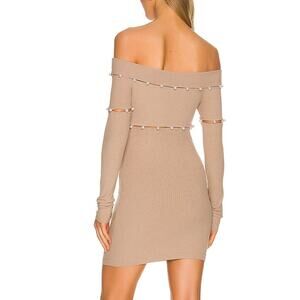 H:ours Off Shoulder Mini Dress Camel Brown SMALL Cut Out Bodycon Knit $204 NEW