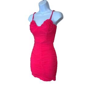 H:ours Pink Mesh Ruched Mini Slip Dress Pink SMALL Bodycon Slinky Estelle $118 NEW