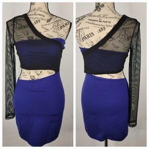 H:ours Revilve Sz S Mini DressMesh Cutout One Shoulder Avalon Blue Black