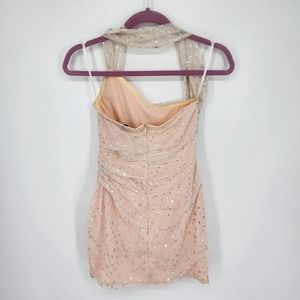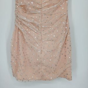 H:ours Rialto Heart Mini Dress XXS One Shoulder Pink Nude Mesh Metallic Silver