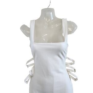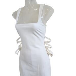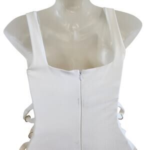 H:ours White Square Neck Corset Tie Front Bodycon Mini Dress Size XS