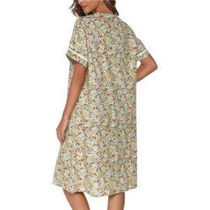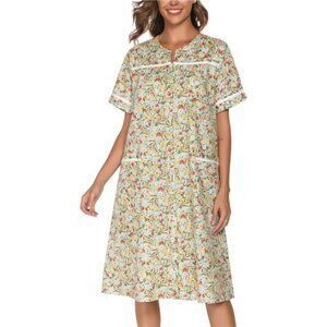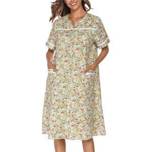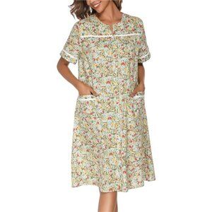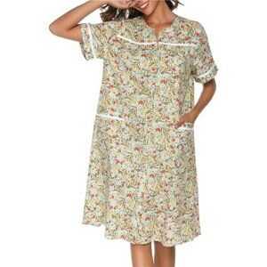 House Dress Womens Embroidered Housecoat Short Sleeve Duster Robe Front Pockets