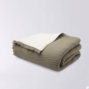 House no. 23 Green Sherpa Lined Double Gauze Cotton Throw Blanket