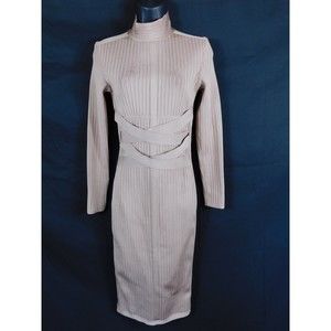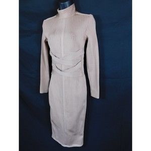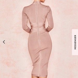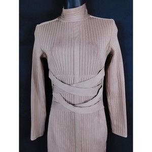 House Of CB Carrera Mink Cross Strap Ribbed Bandage Dress, Size MED