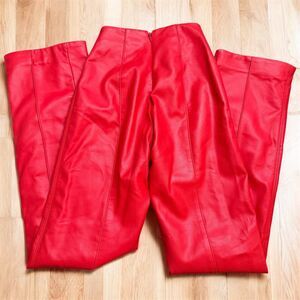 House Of CB Elenaora Red Faux Leather High Waisted Wide Leg Pants XS
