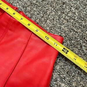 House of CB high waisted rise, straight to wide leg, red faux leather pants. Back Zipper and hook closure.