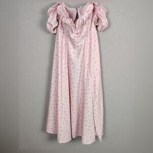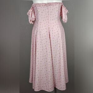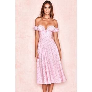 House Of CB Lauren Size Large + Pink Floral Midi Dress Off Shoulder Ruffle