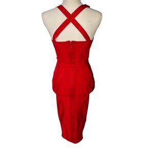 House Of CB London Red Bodycon Halter Dress With Cross Back Red Hot Size Small