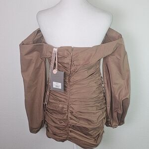 House Of CB Womens Dress Sz M Indra Mocha Off Shoulder Mini,Party,Dance Ruched