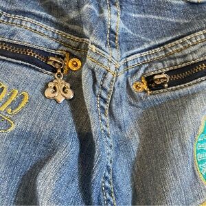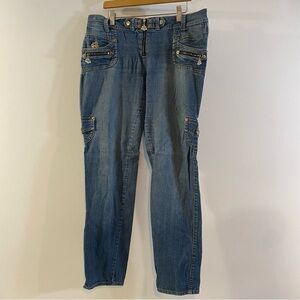 House Of Dereon Denim Cropped Embellished Cotton Blue Jeans Size 9/10