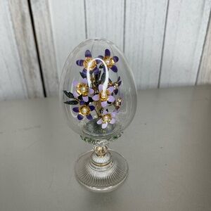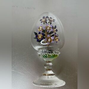 House Of Faberge Franklin Mint Purple Flower Bouquet Glass Egg Austria.