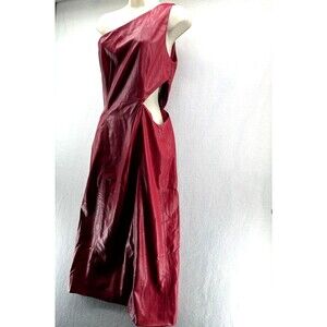 House Of Harlow 1960 Bordeaux Dress Size M Red Vegan Leather Midi Cut Out NWT