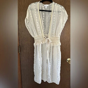 House Of Harlow 1960 Cream Sheer Lace Crochet Cardigan Duster Cover Up One Size