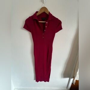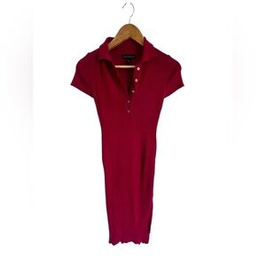 House Of Harlow 1960 Dress Midi Polo Raspberry Ribbed Knit Button Size XS, excellent condition, like new