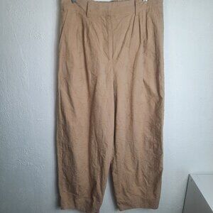 House Of Harlow 1960 Khaki Tan Palm Tree Embroidered Barrel Leg Trouser Pants M
