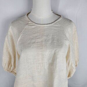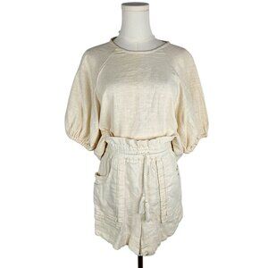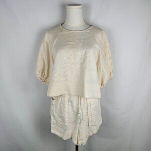 House Of Harlow 1960 Linen Blend Puff Sleeve Top & Shorts Set Size Small Ivory
