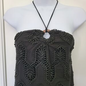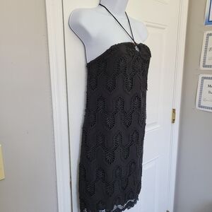 House Of Harlow 1960 Revolve Black Crochet Lace Halter Mini Dress Medium