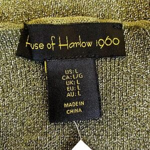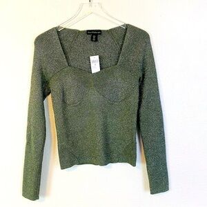 House Of Harlow 1960 Silver Metallic Shimmer Moss Green Stretch Knit Top Size L