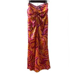 House Of Harlow 1960 Strapless Midi Maxi Dress Orange Pink Psychedelic Small