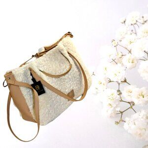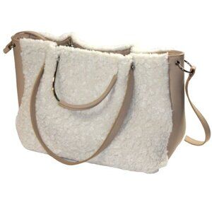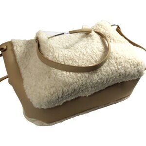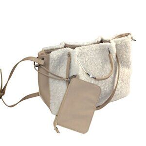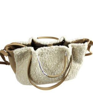 House Of Harlow 1960 Tan Cream Sherpa Shearling Detachable Wristlet Jumbo Tote
