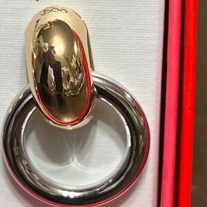 House Of Harlow 1960 Two Tone Gold Silver Tone Puffy Door Knocker Earrings
