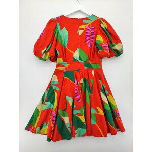 House Of Harlow 1960 Women’s Red Floral Fit & Flare Puff Sleeve Dress Size 4