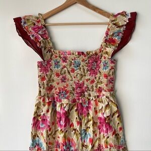 House Of Harlow 1960 Zoey Khaki Multicolored Floral Print Smocked Maxi Dress, Ruffle Straps!