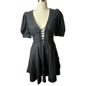 House Of Harlow Black Short Sleeve Linen Blend Skater Dress Women's Size 2 NWOT