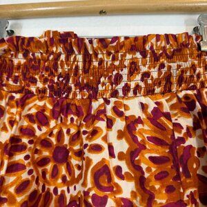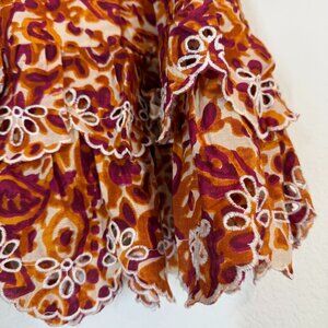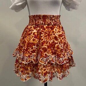 House Of Harlow Embroidered Mini Skirt Orange Pink Cotton smocked waist scalloped in a Size Medium. Perfect for music festivals, beach vacations, or brunch dates. Lightweight cotton blend keeps you cool while turning heads. Looks adorable with a simple tee, crop top, or denim jacket.