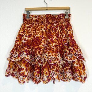 House Of Harlow Mini Skirt Orange Pink Embroidered Boho Medium