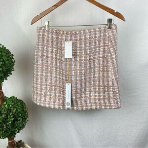 House Of Harlow Pink & White Woven Mini Skirt NEW S