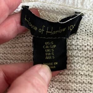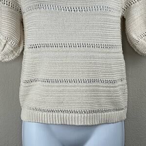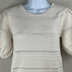 House Of Harlow Puff Short Sleeve Cream Round Neck Knit Sweater Top XS/Small