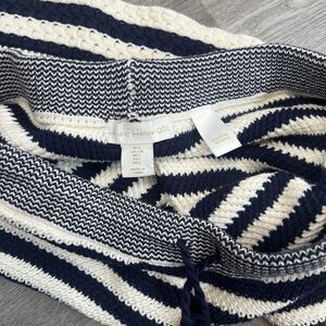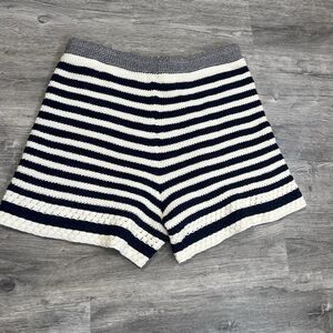 House Of Harlow Striped Shorts Navy white crochet Drawstring Waist NWOT Large