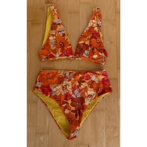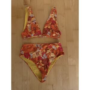 House Of Harlow Yellow Floral Retro Two Piece Swimsuit Bikini Small