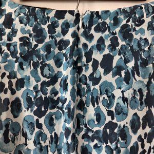 Pretty watercolor print, asymmetric hem, lined, back zipper and button details on side