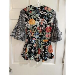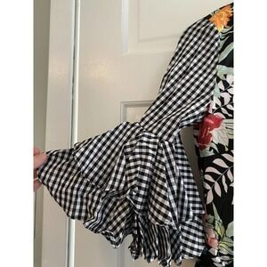 Elevate your wardrobe with this House Of Holland mini dress. The multicolor floral pattern and ruffle sleeve accents add a playful touch to the dress, making it perfect for various occasions such as travel, wedding, parties, and more. The crew neck and short sleeves provide a comfortable fit, while the short dress length and polyester material keep you cool on warm days. This dress is a size 2 and has a regular size type, making it a great addition to any women's wardrobe. Shop now and make a stylish statement!