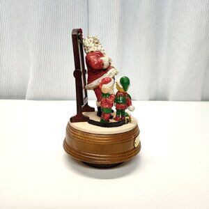 This charming 1991 House of Lloyd wind-up musical figurine showcases Santa and his helpers in a delightful, heartwarming scene. Aptly titled "A Tight Fit," it plays "Deck the Halls" while spinning, embodying the joy and whimsy of the holiday season. A perfect collectible for those who appreciate intricate details and festive cheer.